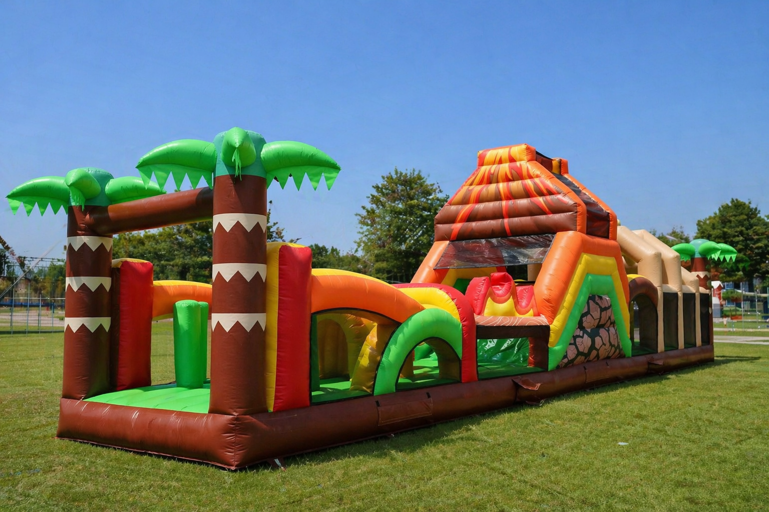 Naša nafukovacia Safari & Dino prekážková dráha prinesie 15 metrov čistej zábavy, adrenalínu a pohybu. ⚡